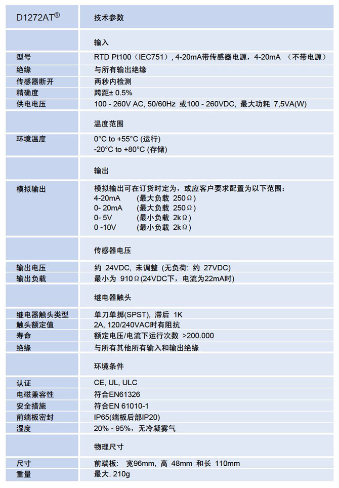 與組合套管的模拟輸出端(Pt100或4-20mA)或者ZT-F2.1溫度傳感器相連接有兩個可調節的極限值開關和多個輸出信号(4-20mA、0-5V、0-10V)可供選擇