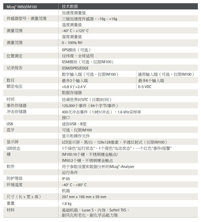 MESSKO MLog運輸監視儀可将各種參數和情況儲存並(bìng)用圖形加以顯示。這樣一來,它對承運商和客戶來說都清晰透明、一目瞭(le)然。除瞭(le)記錄三個空間方向(X軸Y軸和Z軸)的加速狀态,還可記錄環境溫度、空氣濕度等其它參數。此外,MESSKO MLog 還可随意增加配置參數,擴展模拟及數字信号的輸入通道。借助GPS全球定位系統,運送的貨物可輕而易舉地在全球範圍内定位並(bìng)跟蹤其運輸路徑。這樣可根據特定地點回溯某些情況的發生。如果客戶需要,MESSKO MLog版本号 IM100 也可提供藍牙和GSM 全球移動通訊系統模式,實現無線傳輸及無線通訊。無論MESSKO MLog儀器身處何地,GSM模式可確保同設備的直接聯系。