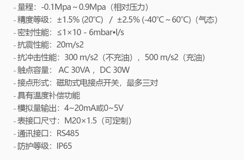 - 核心器件採用德國進口元件,可靠性高- 防腐蝕材料,适應各類氣候條件- 密封性能好,不漏氣- 多種接頭規格可選- 可選擇模拟量輸出做爲遠傳信号- 可選數字通訊方式- 适用於新建和改造項目